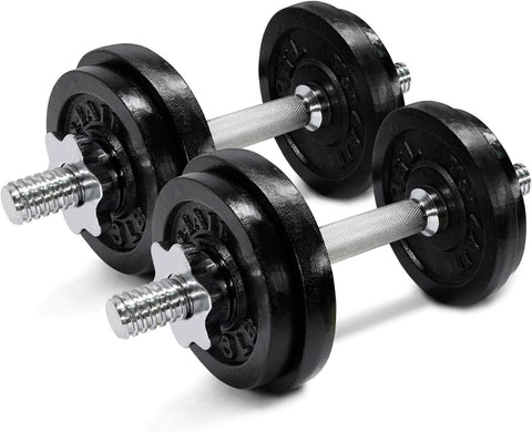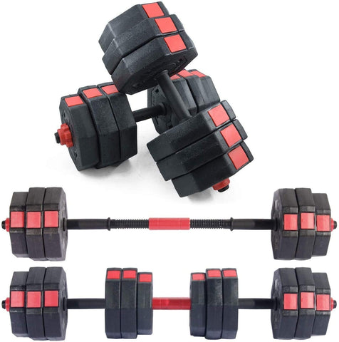 Soges adjustable dumbbells pair is a versatile weight set designed for multiple ways of dumbbell workout. The set includes two dumbbells, with four plates (4.4 lbs for each one), and eight heavier plates (5.5 lbs for each one). And what really makes the easy adjustments is the main rods and a connecting rod. With the rods, plates and screw collars, you will be able to adjust the weight and enjoy workout by different combinations of plates. The adjustable design feels like these dumbbells are a transformer that transforms to respectively focus on different parts, stages of bodybuilding. Moreover, the dumbbells' octagonal shape is a nice feature to prevent possible damages to the floors. Too sharp in shape, or round design will scratch the floor by accident. And octagonal dumbbells will just stay steadily in place.